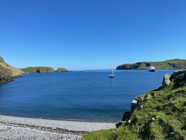 The Shiants attracts not just sailboats like us, but also the smaller cruise ships like this one ... albeit for the well-heeled seafarers. |